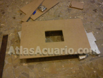 Si en vuestro caso tenéis que poner casquillos, es aún más fácil, sólo tendréis que hacer unos agujeros para poner el tornillo o tornillos del casquillo y otro para pasar el cable.Ahora cortarémos el resto de partes de la pantalla, que serán los dos laterales (más pequeños) y el frontal y la trasera (más largos).