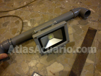 Lo siguiente será ver que tipo de iluminación vamos a poner, en este caso, es un foco LED de 10W, y como el foco ya viene listo para su uso, lo que haré será hacer un agujero a medida con la sierra de calar en el centro de la madera que acabamos de cortar.