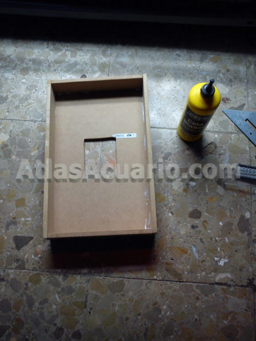 Después de tener las 5 piezas de madera ya cortadas, lo siguiente es encolarlas para ir dándole forma a nuestra pantalla. Para ello utilizaremos cola blanca para madera.