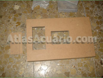 apoyo de la pantalla dentro del acuario, además cortaremos 2 rectángulos pequeños