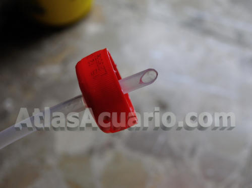 Después cortamos el tubo de silicona, dejándo un palmo entre el corte y el tapón,