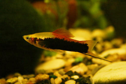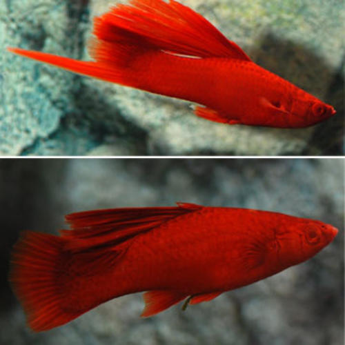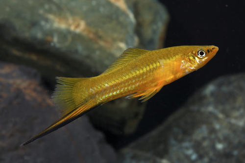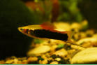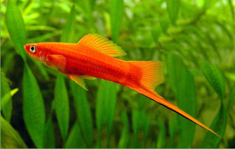 La aleta caudal de los machos acaba en una punta en forma de espada.